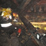 Nach erster Erkundung durch den Einsatzleiter stand fest dass mindestens ein Holzbalken einer Tram-Decke bereits Feuer fing und so die Decke für effektive Löscharbeiten geöffnet werden musste. Aufgrund starker Rauchentwicklung war ein vorgehen nur mit schwerem Atemschutz möglich.