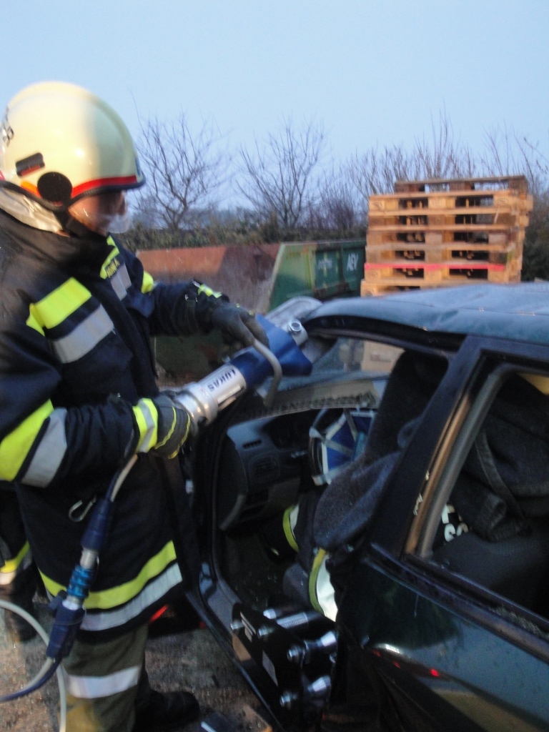 …lautete das Stichwort für die Monatsübung am Samstag. Es wurden unterschiedliche Vorgangsweisen mit dem hydraulischen Rettungsgerät an den Unfallwracks ausprobiert. Von Crashrettung bis hin zur patientenorientierten schonenden Rettung wurden verschiedene Situationen angenommen und an mehreren Fahrzeugen beübt.