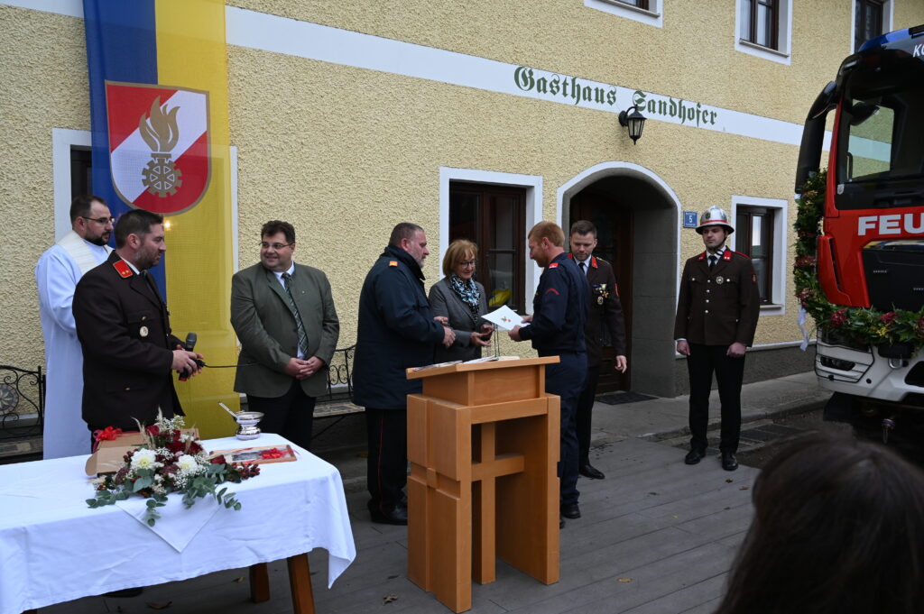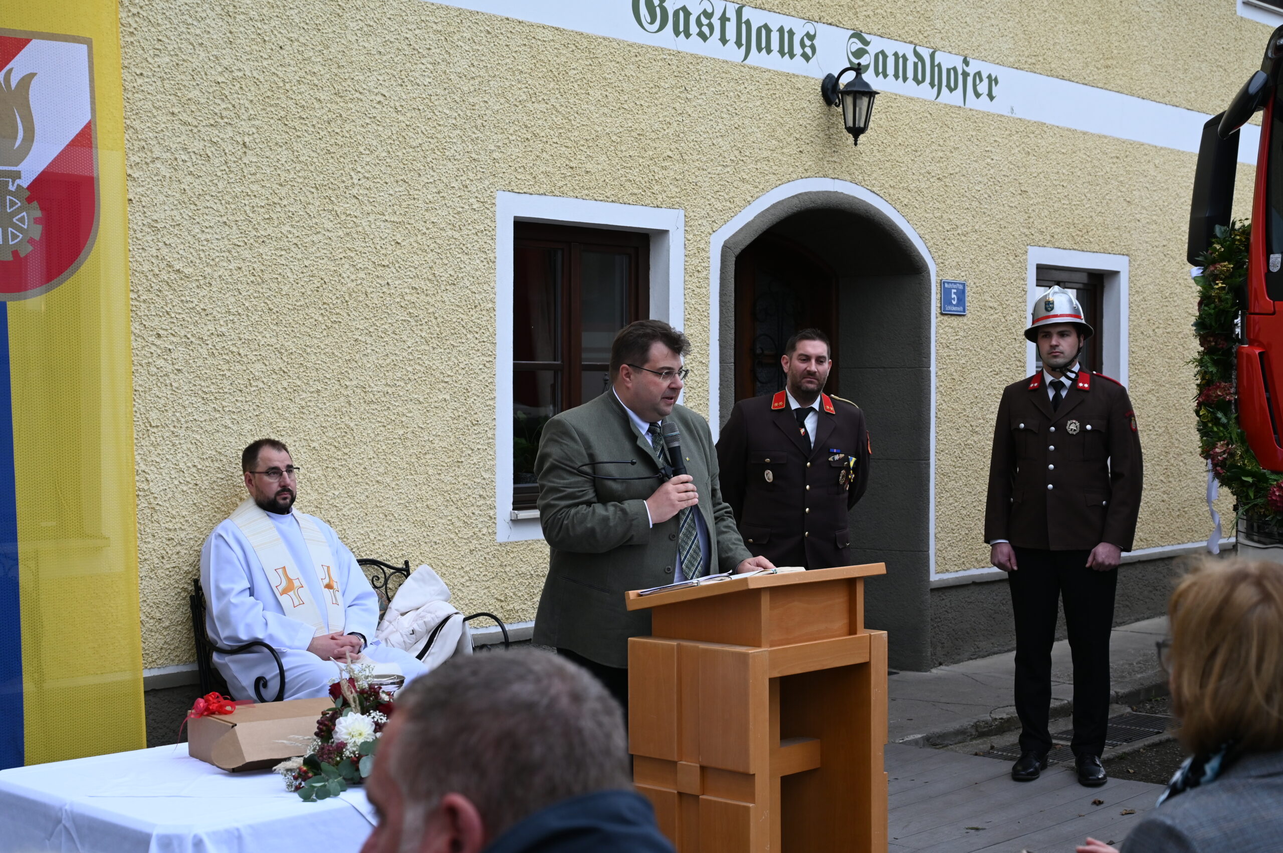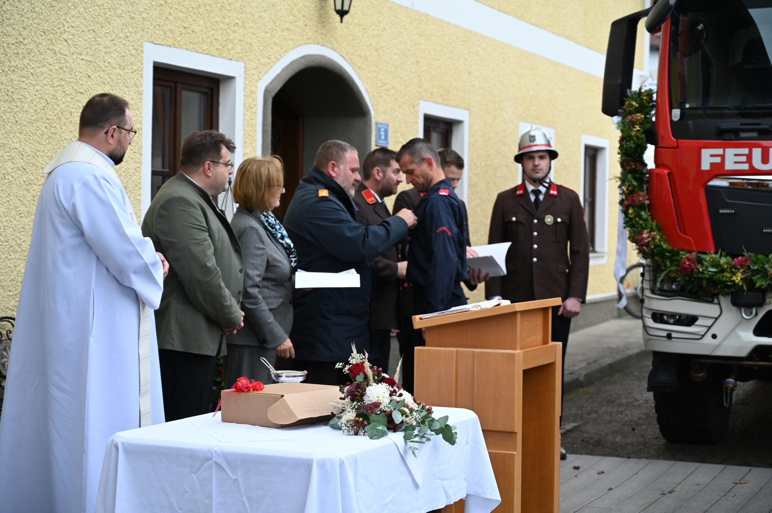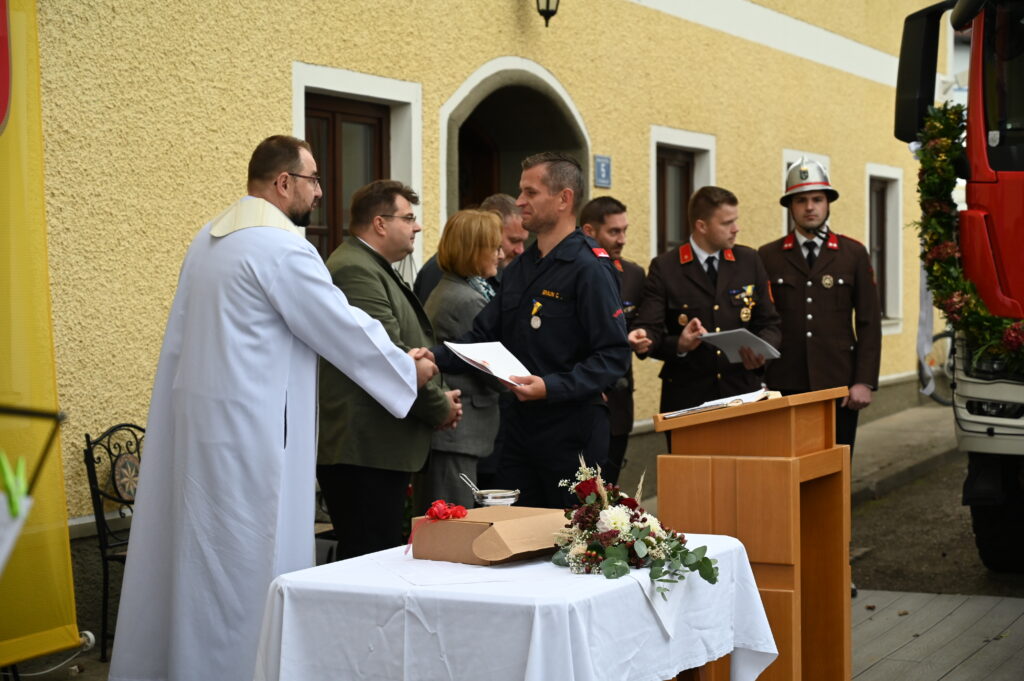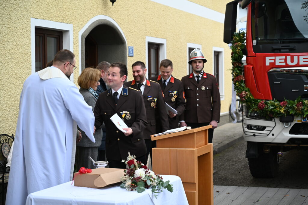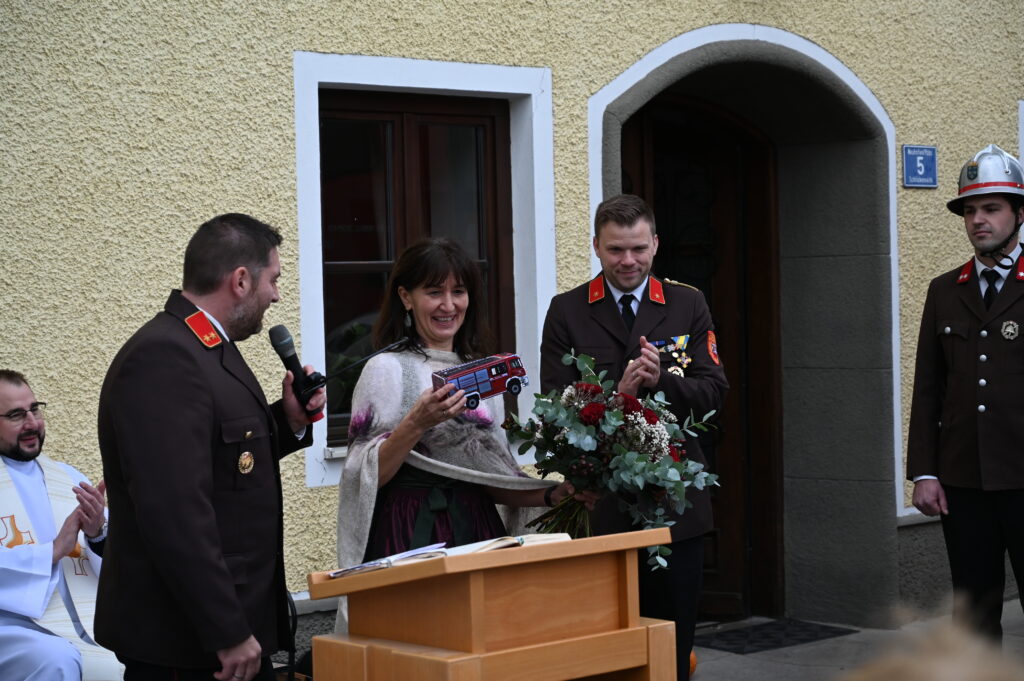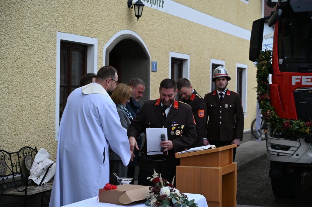 Im Rahmen der Feierlichkeiten wurde das neue Fahrzeug offiziell in den Dienst gestellt und von Pfarrer Christoph Hofstätter feierlich gesegnet.