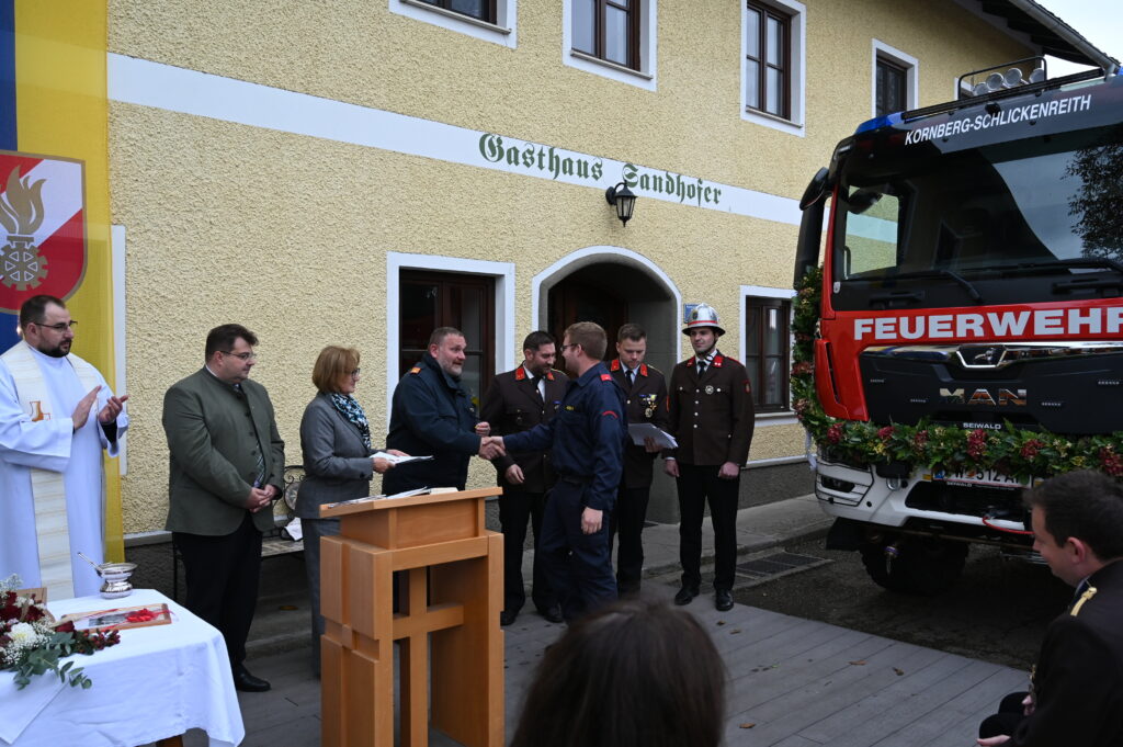 Mit musikalischer Umrahmung und einem gemütlichen Ausklang im Feuerwehrhaus fand die würdige Feier ihren Abschluss. Das neue Fahrzeug wird künftig maßgeblich zur Schlagkraft und Einsatzbereitschaft der Feuerwehr Kornberg-Schlickenreith beitragen.