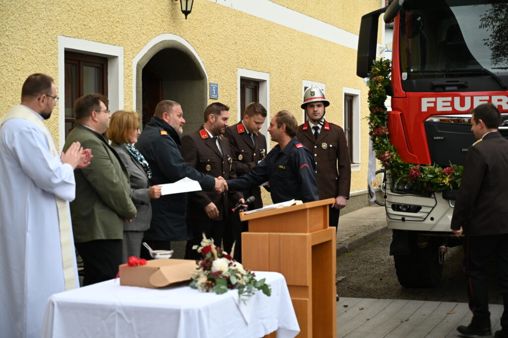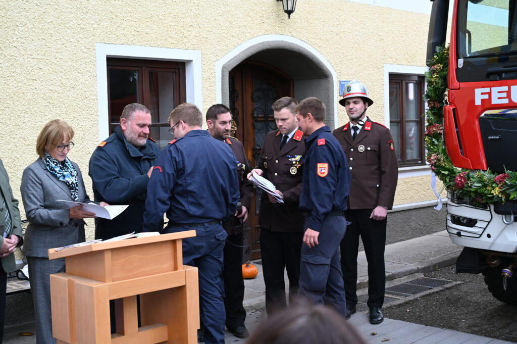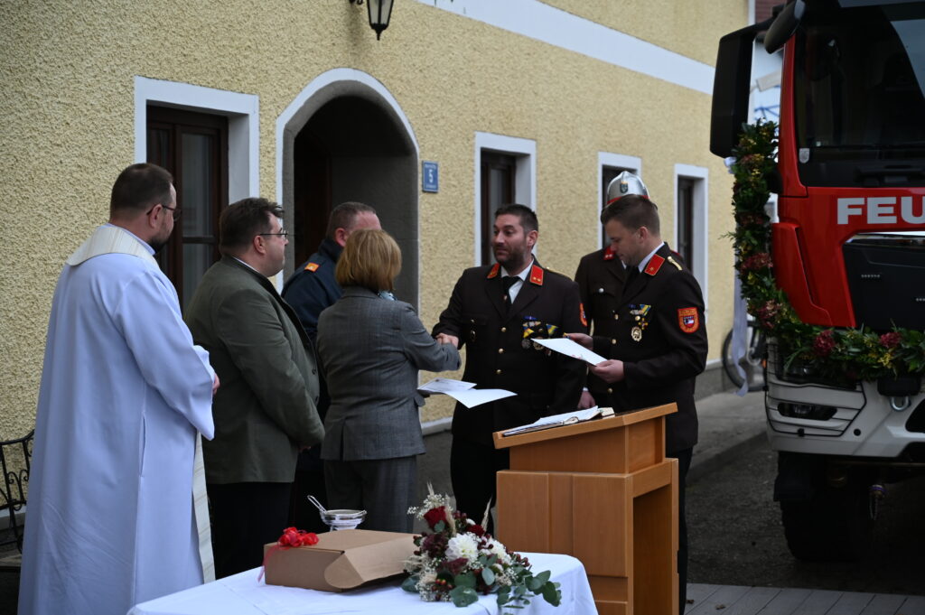 Auch Bezirksfeuerwehrkommandant Rudolf Katzengruber sowie Bürgermeisterin Maria Kogler richteten anerkennende Worte an die Feuerwehrkameraden. Beide hoben den hohen Einsatzwillen, die gute Kameradschaft und die Bedeutung moderner Ausrüstung für die Sicherheit der Bevölkerung hervor. In ihren Worten betonten sie den Wert des ehrenamtlichen Engagements und wünschten der Mannschaft stets unfallfreie Einsätze und eine sichere Heimkehr.